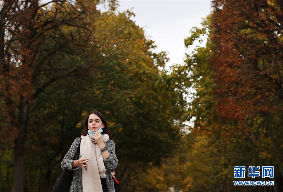 10月23日,一名女子在法国巴黎卢森堡公园散步。 近日,法国巴黎迎来深秋天气。 新华社记者高静摄