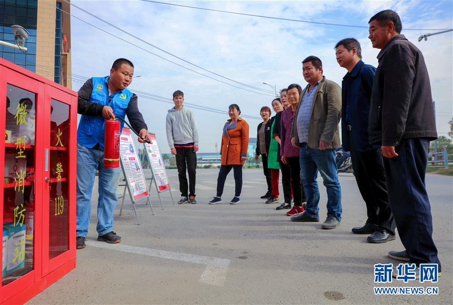 10月26日,长兴县吕山乡应急管理中心网格员和消防志愿者给村民讲解消防器材操作使用。 今年以来,浙江省湖州市长兴县紧盯行业短板和重难点问题,开展5大领域专项整治(金属熔融、危险化学品储存使用、危化品全生命周期、小微企业、非法违法“小化工”)以及安全生产隐患排查。长兴县应急管理部门工作人员走村入企,开展安全生产竞赛、安全生产宣讲日、应急演练等活动,推进企业员工安全生产大培训,提升社会公众安全意识,筑牢安全生产基层防线。 新华社记者 徐昱 摄