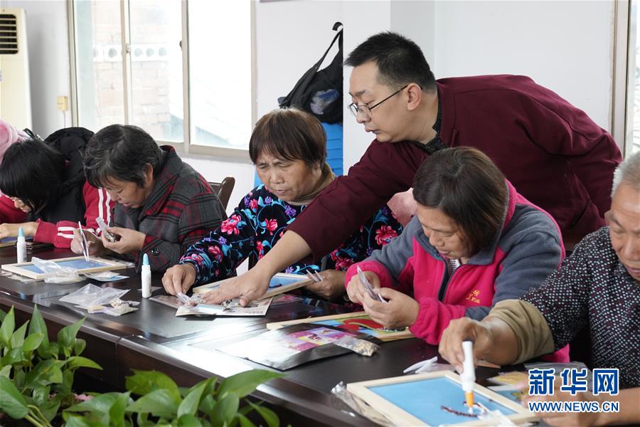 10月26日,在重庆市北碚区澄江镇五一村,非遗传承人唐大焱在为村民传授民五谷粮食画制作技艺。 重庆市北碚区的五谷粮食画通过粘、贴、拼、雕等手段,能将平时常见的各种粮食巧妙设计、精心粘贴后变成山水、人物、花鸟、卡通等形象的画作。近年来,当地五谷粮食画非遗传承人多次走进乡村,向居民传授五谷粮食画制作技艺,让更多的人认识了解粮食画的艺术魅力,让这门特色艺术不断传承和发扬。 新华社发(秦廷富 摄)