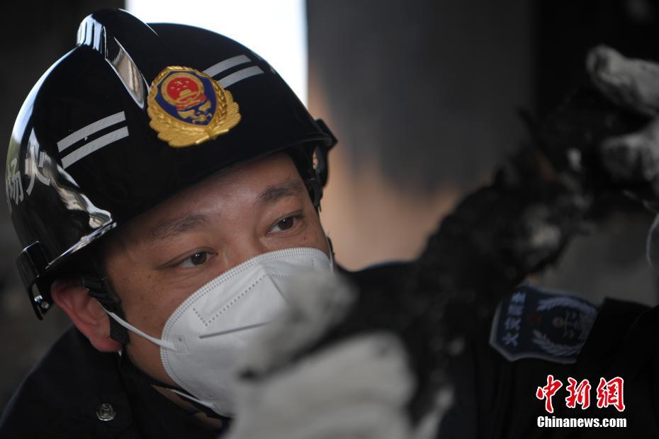 图为10月27日,火灾调查员在现场进行勘验。中新社记者 刘冉阳 摄