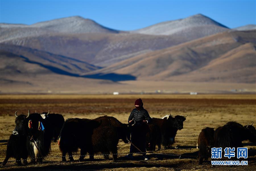 10月28日,青海省玉树藏族自治州称多县珍秦镇二村牧民尼玛措毛在拴牦牛准备给牦牛挤奶。 日前,位于青海省玉树藏族自治州称多县的嘉塘草原生机勃勃。嘉塘草原地处三江源生态保护区的核心区,畜牧业是当地赖以生存和发展的支柱产业。近年来,当地政府通过调整产业结构,构建划区轮牧、科学养畜、草畜平衡、协调发展为主的生态畜牧业,形成生态保护和畜牧业生产的良性循环。 新华社记者 张龙 摄