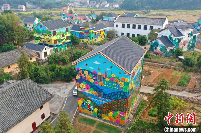 航拍江西万安田北农民画村