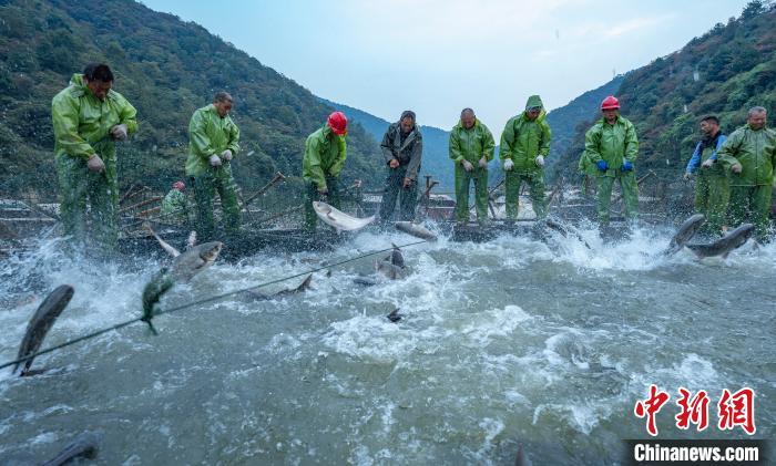 10月29日清晨,江西省新余市仙女湖迎来场面壮观的巨网秋捕丰收时刻。当天,由新余市仙女湖渔业公司巨网捕捞队收网捕获的8万多斤有机鱼运往广东、河南等市场。据了解,仙女湖每年有1000多万斤有机鱼远销广东、浙江、江苏、湖南、河南、安徽等地。近年来,新余市仙女湖通过落实“河长制”、“湖长制”,加大水环境保护,在50平方公里的水域实施人放天养的有机鱼养殖模式,实现了生态效益和渔业经济效益双发展。