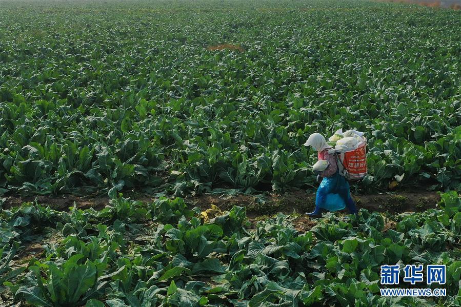 10月28日,乐亭县马头营镇黄坨村村民在田间收获菜花(无人机照片)。 近年来,河北省唐山市乐亭县通过建设规模化生产基地、推行标准化管理技术、建立龙头企业开展集约化营销,积极引导农民发展菜花种植,取得良好效益。目前,该县菜花种植面积近3万亩,年产优质菜花10.5万吨。 新华社记者 杨世尧 摄