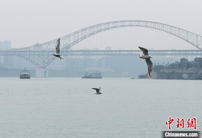 红嘴鸥正在水面上进行觅食。 陈超 摄