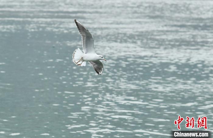 红嘴鸥正在水面上进行觅食。 陈超 摄