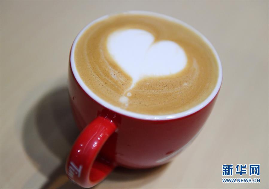 11月5日在Tims咖啡展台拍摄的一杯咖啡。 在第三届中国国际进口博览会食品及农产品展区,来自全球的各种美食既吸引眼球,又满足味蕾。 新华社记者 陈晔华 摄