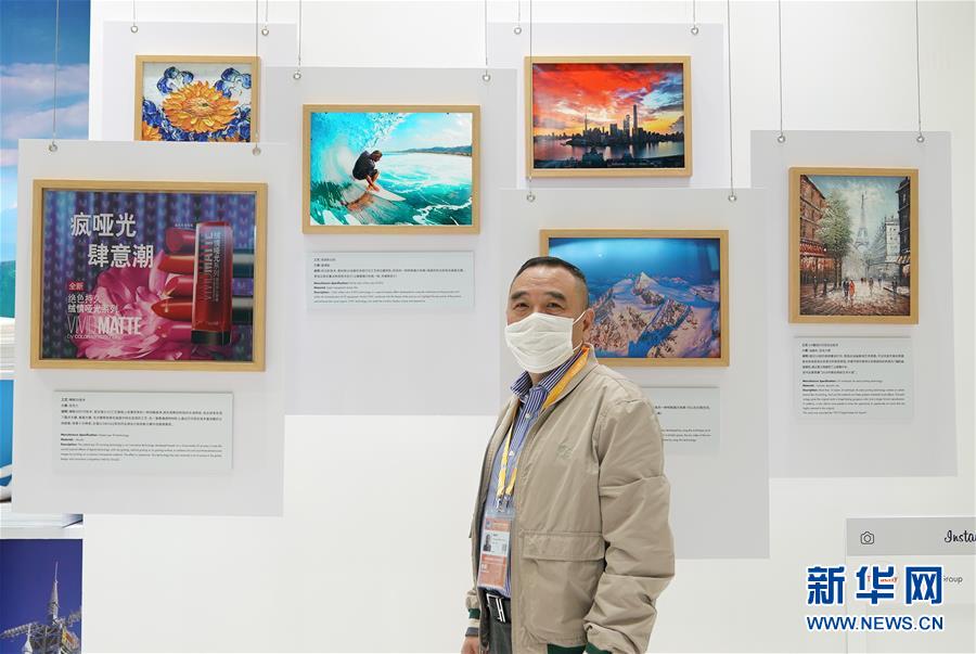 11月5日,工作人员张政平在第三届进博会服务贸易展区内的通达理展台展板前。今年首次参展进博会的通达理是广告视觉营销解决方案供应商,旨在“用最好的色彩向世界诉说您的故事”。 在第三届中国国际进口博览会上,近50家世界500强及行业龙头企业首次参展,覆盖全部六大展区。“新面孔”不断加入“进博朋友圈”,“进博效应”已成为企业开拓更大市场的新动力。 新华社记者 丁汀 摄