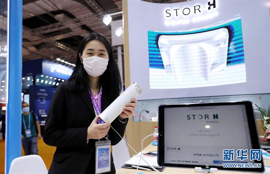 11月7日,在今年首次参展进博会的瑞士STOR-H TECHNOLOGIES SA公司展台,工作人员张倩展示公司的固态储氢罐样品。 在第三届中国国际进口博览会上,近50家世界500强及行业龙头企业首次参展,覆盖全部六大展区。“新面孔”不断加入“进博朋友圈”,“进博效应”已成为企业开拓更大市场的新动力。 新华社记者 方喆 摄