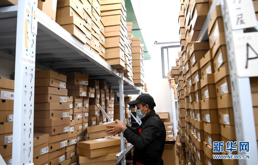 11月10日晚,在河南省孟州市南庄镇桑坡村,一名工作人员在仓库整理货品。新华社记者 郝源 摄