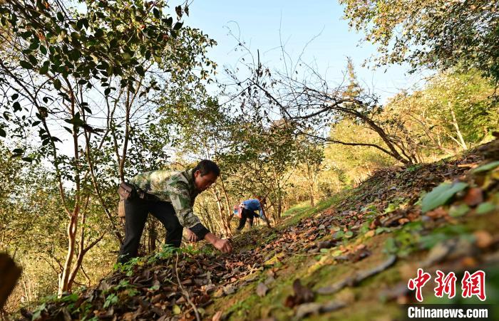 从江县西山镇滚郎村的村民在油茶地里捡茶籽。 吴德军 摄
