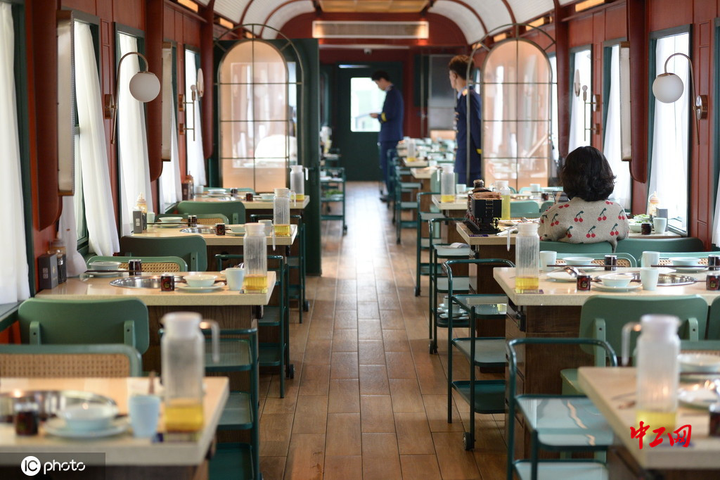 2020年11月12日,成都,位于成华区的二仙桥公园内有一辆停在轨道上的绿皮火车被改装成火锅店,装修别致典雅充满怀旧气息创意十足,令人耳目一新。(高寒/IC photo)