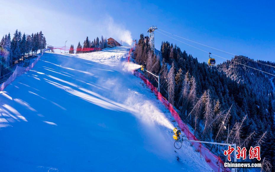 11月11日,新疆乌鲁木齐市南郊山区一滑雪场,造雪机正在加紧造雪。进入11月,受天气影响乌鲁木齐市南郊山区降雪较少,各滑雪场造雪机正开足马力进行人工造雪。该市将于近期迎来降雪降温天气,随后各滑雪场将陆续开门迎客,迎来新雪季。 中新社记者 刘新 摄