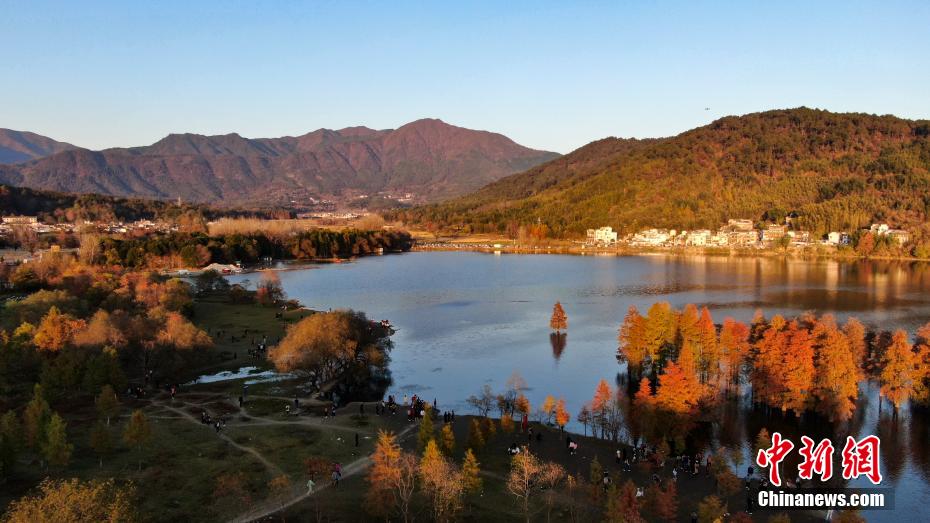 图为航拍夕阳下的安徽省黄山市黟县宏村镇奇墅湖。 张娅子 摄