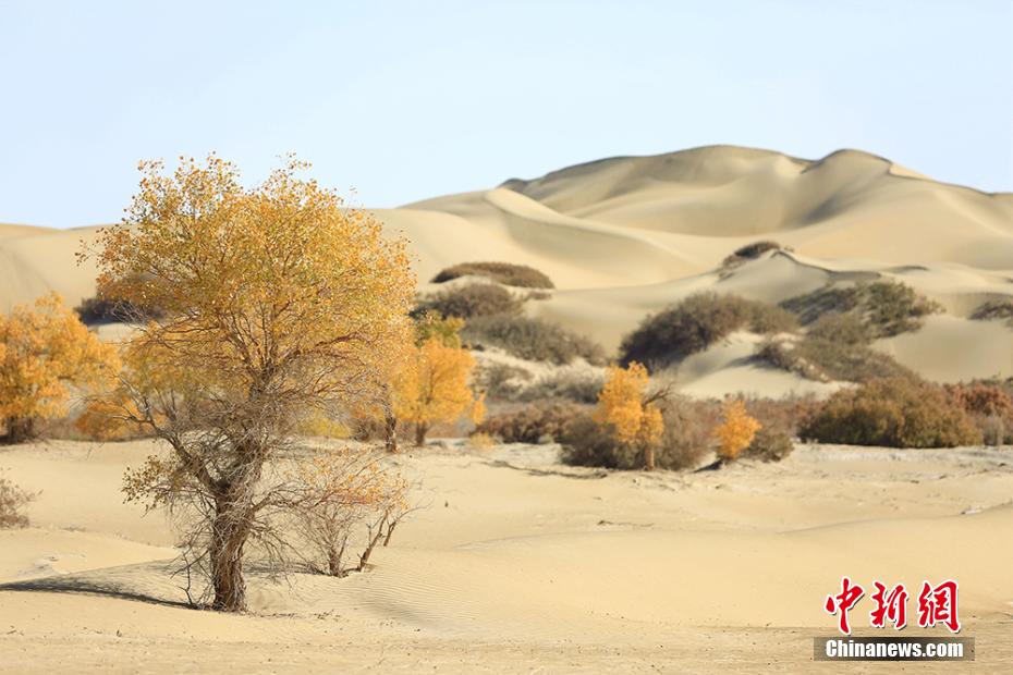 美!中国最大沙漠边缘天然胡杨金黄一片