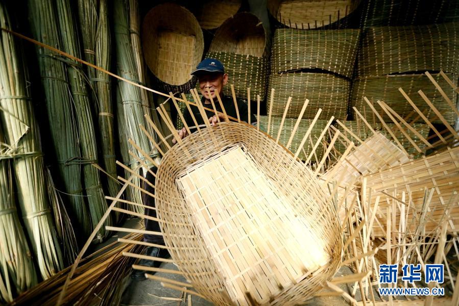 11月15日,山东青岛市即墨区龙山街道刘家官庄村的手工艺人在制作竹编制品。新华社发(梁孝鹏 摄)