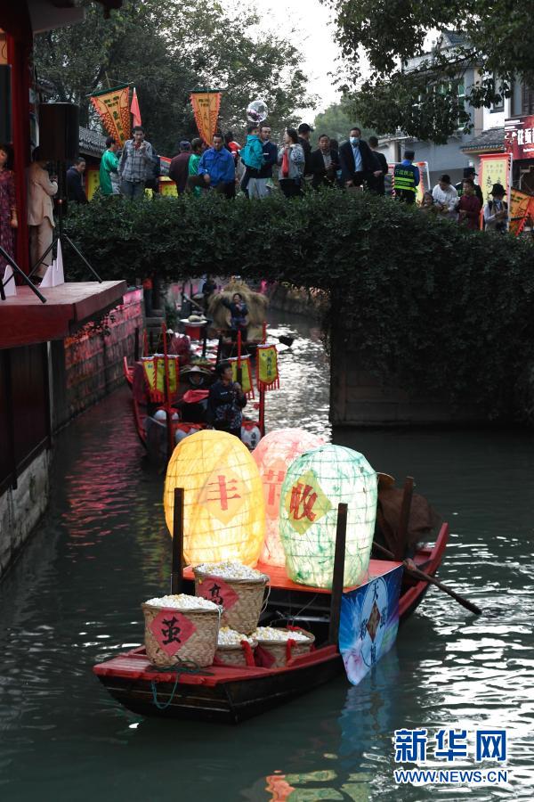 11月15日,游客在和孚镇荻港村观看“水上晒秋”丰收庆典。