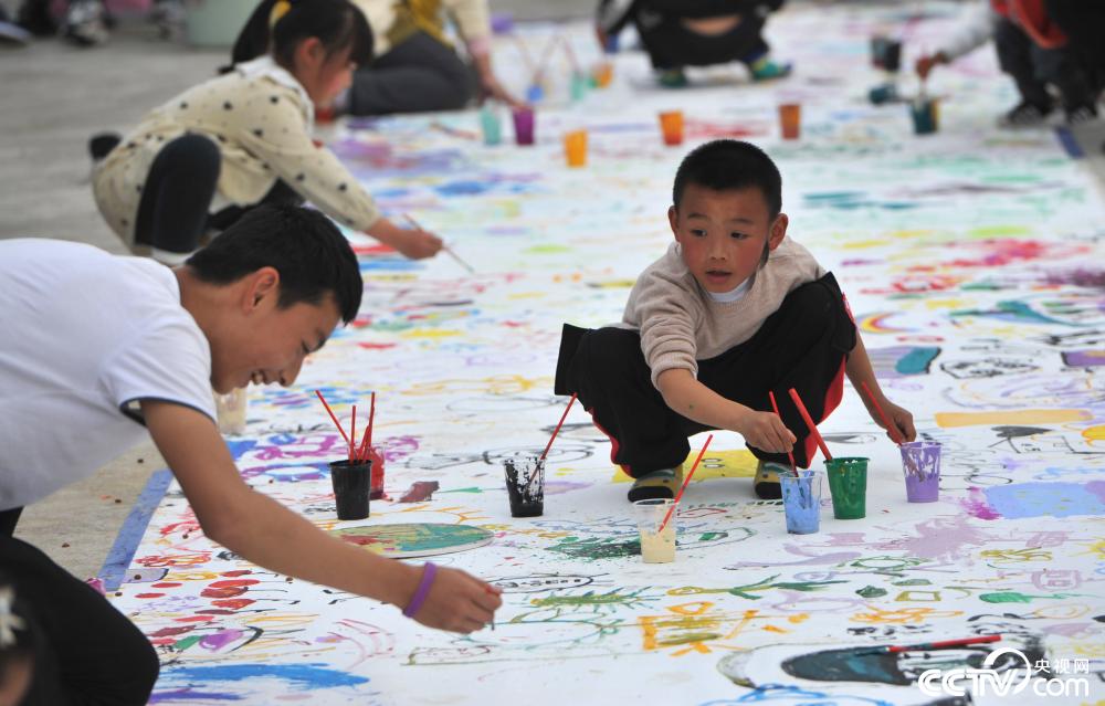 2020年11月15日,在贵阳市乌当区新堡乡,第六届新堡乡“谢牛节”暨王岗“庖汤季”活动拉开帷幕。活动现场有布依迎宾仪式、非遗文创互动、农特产品展示、谢牛祭祀仪式、布依民俗文艺汇演、布依族长桌宴等活动,共有102个亲子家庭参与和体验了多姿多彩的布依族非遗文化。图为小朋友在参加布依族农民画文创活动。 宁坚 摄