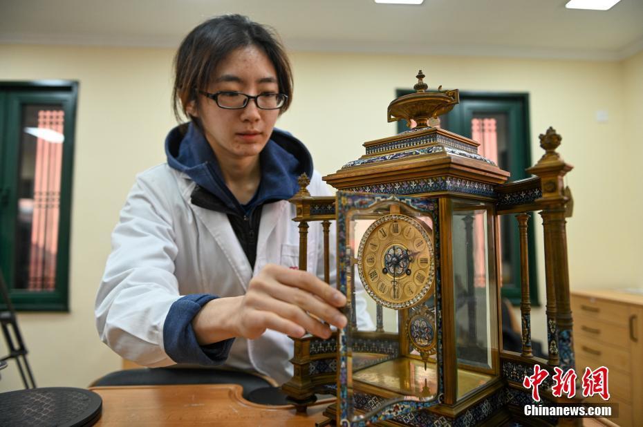 11月16日,故宫博物院与沈阳故宫博物院共同成立的“古钟表联合修复室”揭牌仪式在辽宁沈阳举行。揭牌仪式上,5座于近日完成修复的清宫钟表精彩亮相。 中新社记者 于海洋 摄