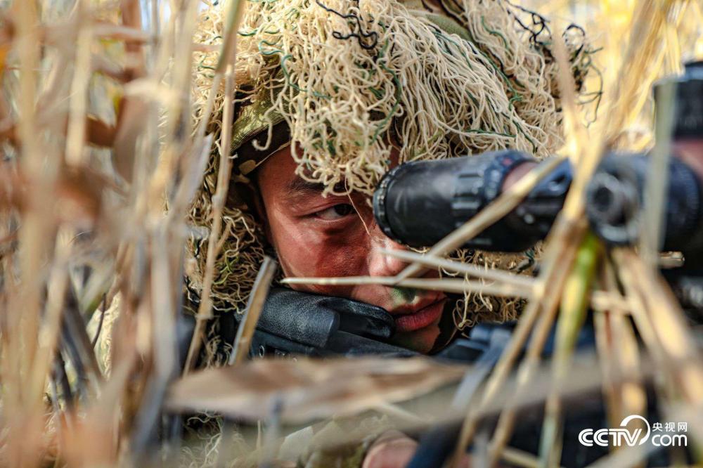 图为狙击手隐蔽自身正在进行潜伏狙击。