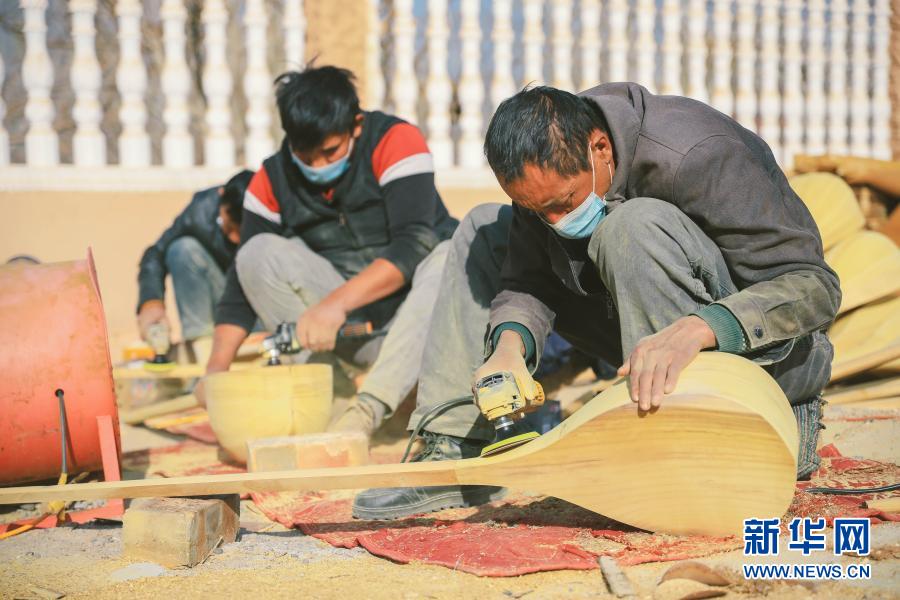 村民在加依村乐器制作农民专业合作社制作民族乐器(11月12日摄)。新华社记者 张曼 摄