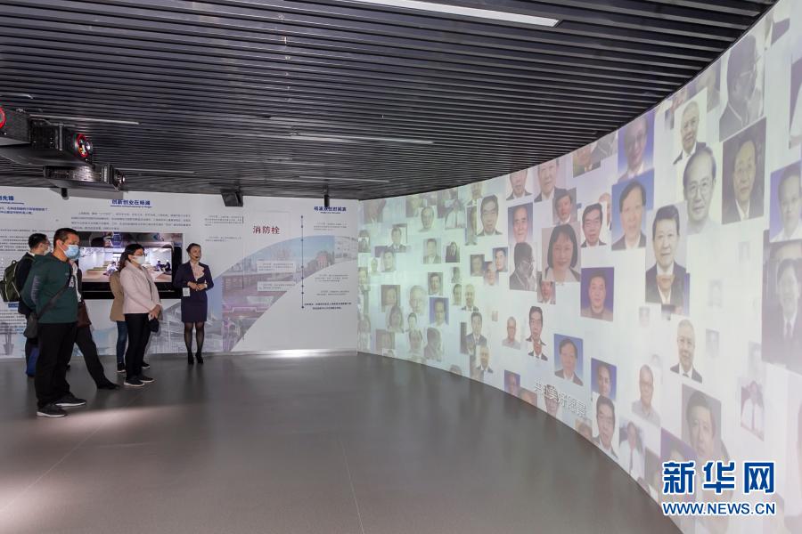 11月17日,人们在上海院士风采馆观看视频了解院士风采。
