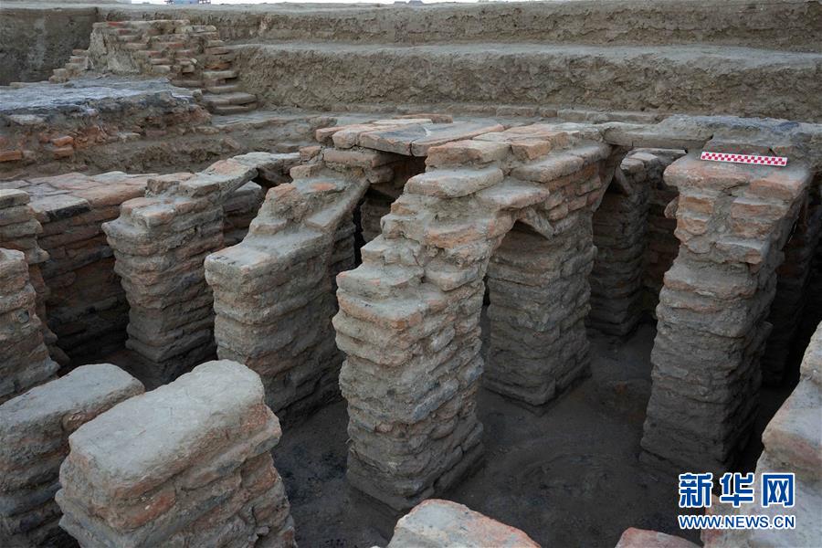 新疆唐朝墩古城浴场遗址西侧支撑柱结构(2018年10月8日摄)。 新华社发(中国人民大学考古文博系供图)