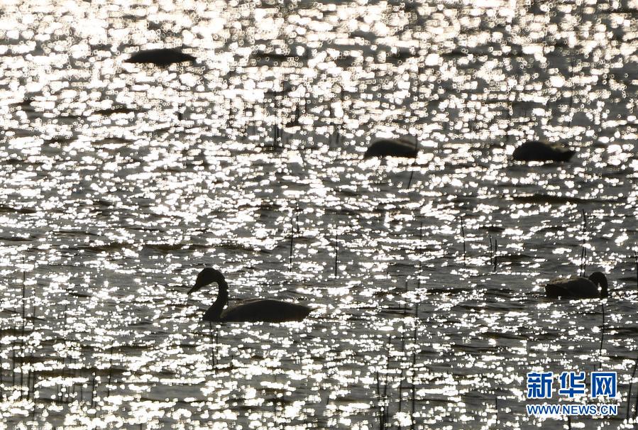 11月18日,天鹅在南京石臼湖游弋。新华社记者 李博 摄