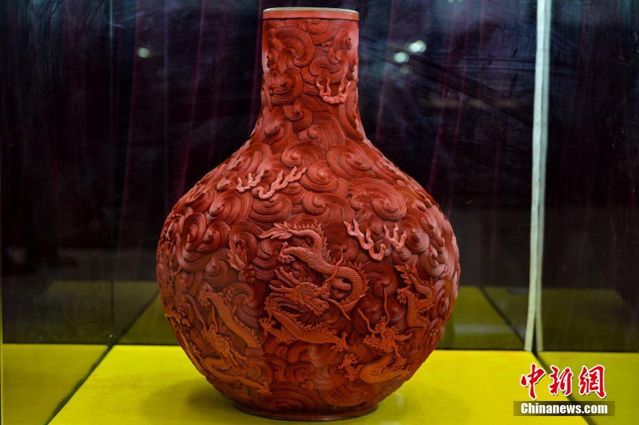 11月20日,北京天桥艺术中心,京津冀非遗精品展上展出的雕漆器。北京、天津、河北三地联袂举办的“京津冀非遗精品展”于11月19日至25日在北京天桥艺术中心举行。中新社记者 田雨昊 摄