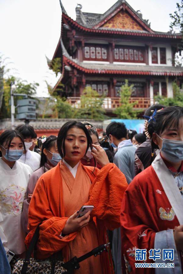 当日,“天府相邀 美丽之约”汉服文化节在成都市文殊坊拉开序幕。众多汉服爱好者身着各种风格的传统汉服,在文殊坊进行汉服巡游,展示汉服文化魅力。
