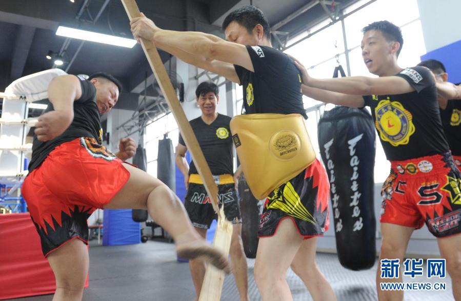 11月21日,广州市番禺区卢氏本能咏春拳训练基地的学员在练习“铁腿断木方”技法。