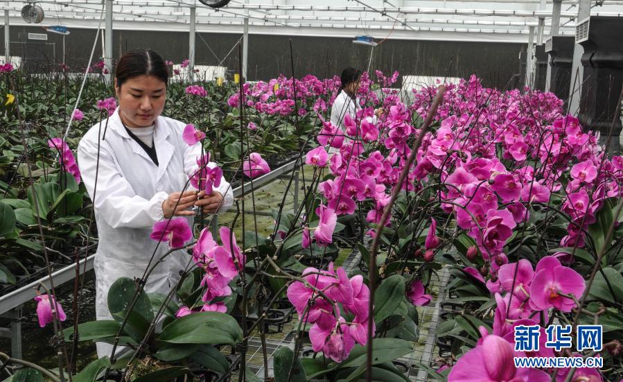 11月23日,园艺师在一家花卉农业科技园里工作。