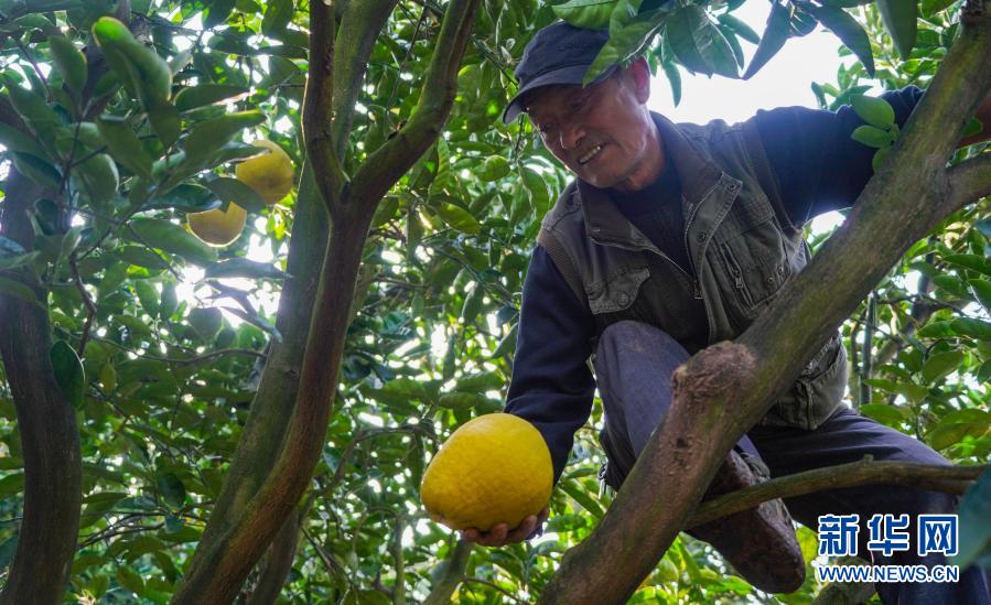 当地果农在广安市龙安乡群策村采摘成熟的柚子(11月13日摄)。新华社记者 王曦 摄