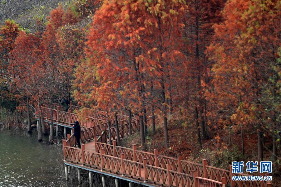 11月28日,游客在江苏省盱眙县天泉湖景区游览拍照。新华社发(汤德宏 摄)