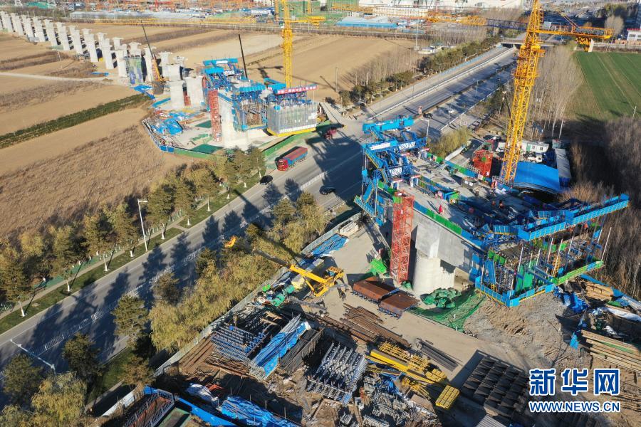 这是11月30日拍摄的建设中的京唐城际铁路河北省廊坊市三河段(无人机照片)。