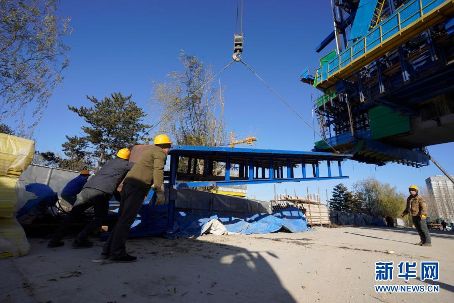 11月30日,工人在京唐城际铁路河北省廊坊市三河段建设工地施工。