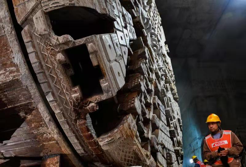12月1日,工人在广州地铁18号线番禺广场站站台层准备将已经完成该工段盾构作业的盾构机拆解吊运出去。