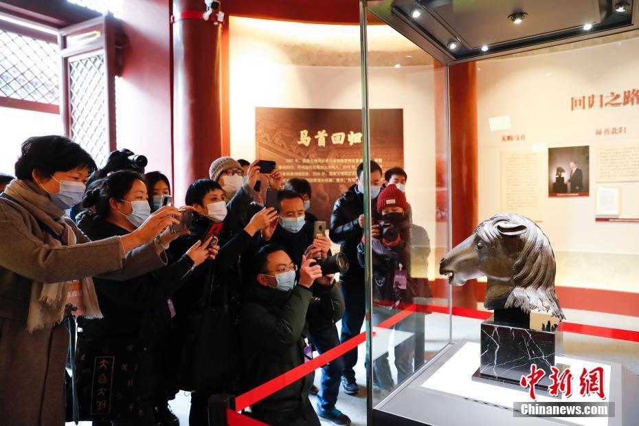 图为在圆明园正觉寺文殊亭展出的马首。中新社记者 杜洋 摄