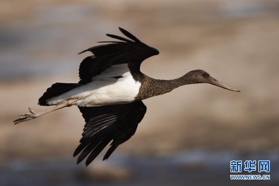 近日,位于青海省西宁市的北川河湿地公园迎来两只黑鹳。黑鹳属鹳形目、鹳科,国家一级保护动物,目前全世界仅存3000只左右,属于国宝级珍禽。新华社记者 吴刚 摄