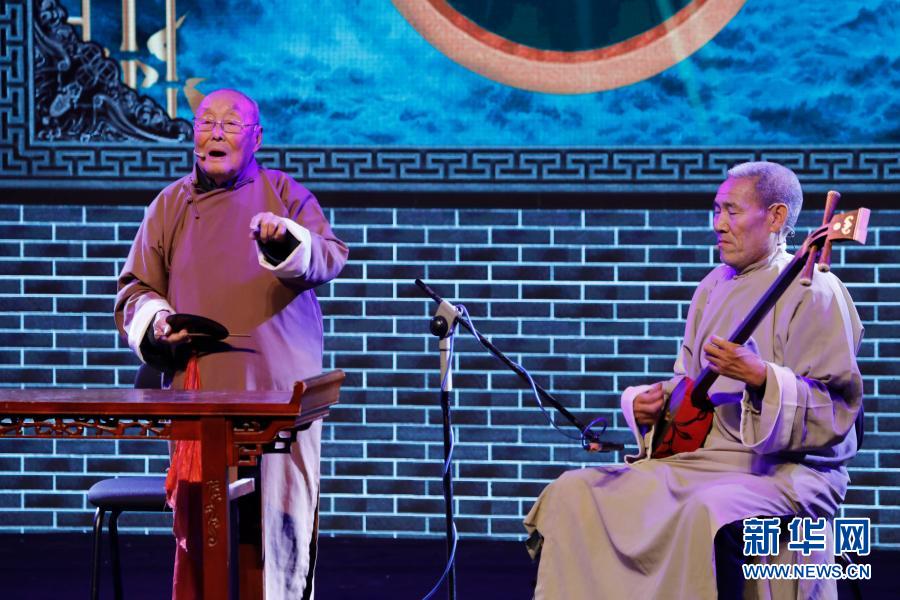 当晚,河南省非遗曲艺展演周汇报演出在河南艺术中心上演,来自全省各地的曲艺名家表演了大调曲子、三弦书、河洛大鼓、河南坠子等节目,展示非遗曲艺文化的魅力。新华社发(何五昌 摄)