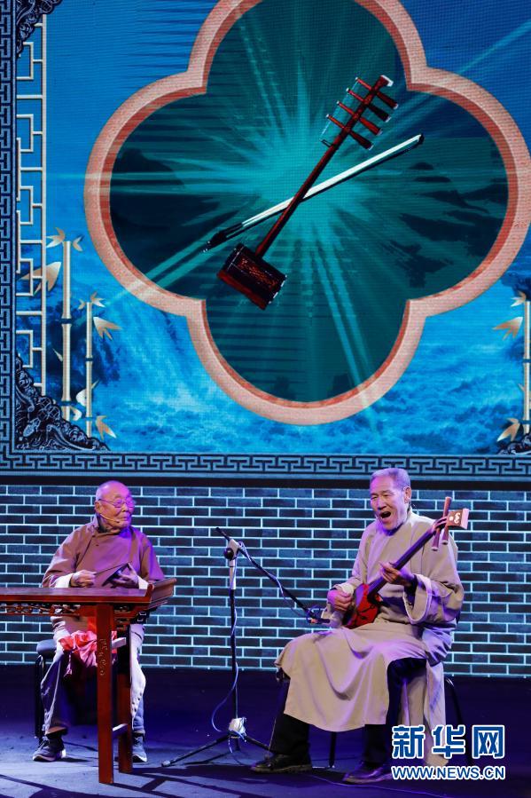 当晚,河南省非遗曲艺展演周汇报演出在河南艺术中心上演,来自全省各地的曲艺名家表演了大调曲子、三弦书、河洛大鼓、河南坠子等节目,展示非遗曲艺文化的魅力。新华社发(何五昌 摄)