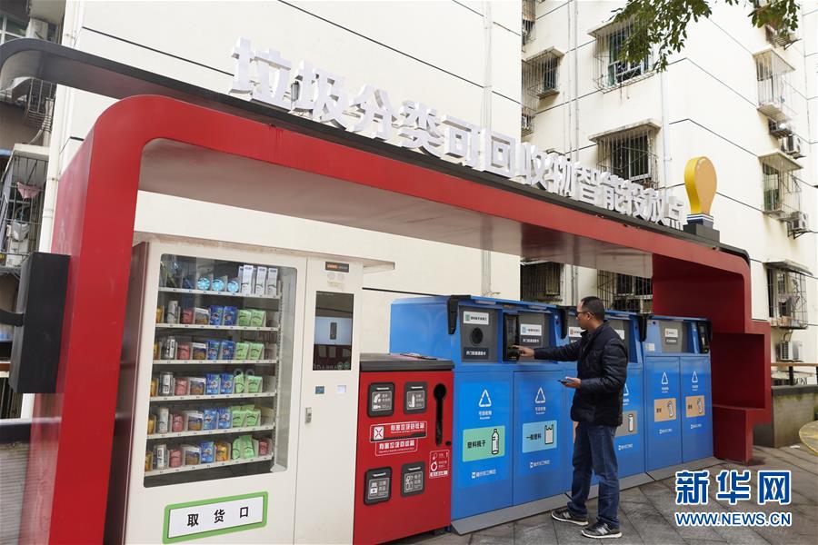 12月8日,在新房子社区,社区居民在垃圾分类可回收物智能投放点注册相关信息。 重庆市北碚区朝阳街道新房子社区是一个“老社区”。从2019年开始,北碚区对新房子社区进行改造提升,对休闲广场、停车场、路灯、护栏等公共设施进行新建或修缮,并为居民楼安装电梯,改善了社区居住环境,让“老社区”重新焕发活力。 2019年以来,北碚区先后对多个老旧小区进行改造,提升居民的幸福感。 新华社发(秦廷富 摄)