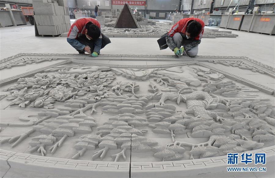 12月8日,在甘肃省临夏回族自治州临夏县一非遗扶贫就业工坊,艺人在制作砖雕作品。 临夏砖雕是甘肃临夏的传统民间艺术,主要用于亭台楼阁、园林、民居等的建筑装饰,以精细传神的雕刻技艺、古朴典雅的艺术魅力而闻名。2006年,临夏砖雕被列入第一批国家级非物质文化遗产名录。近年来,甘肃临夏有关部门和企业积极发展壮大非遗砖雕产业,通过“非遗+扶贫”模式,丰富砖雕产品类型,促进劳动力就近就业,帮助当地群众拓宽增收渠道。 新华社发(史有东 摄)