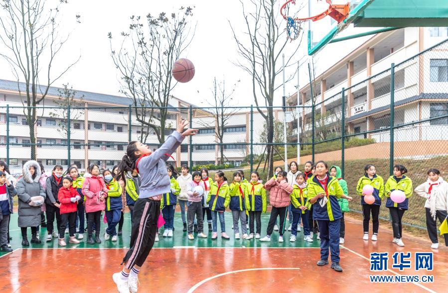 12月7日,在贵州省毕节市黔西县锦绣学校首届体育文化艺术节上,学生在进行投篮比赛。