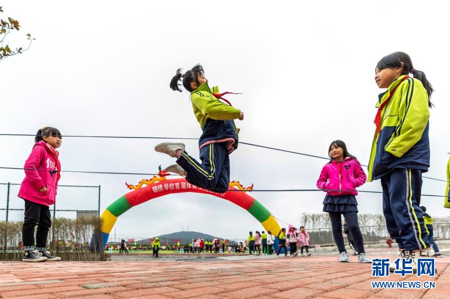 12月9日,在贵州省毕节市黔西县锦绣学校首届体育文化艺术节上,学生在玩跳皮筋。新华社发(范晖 摄)