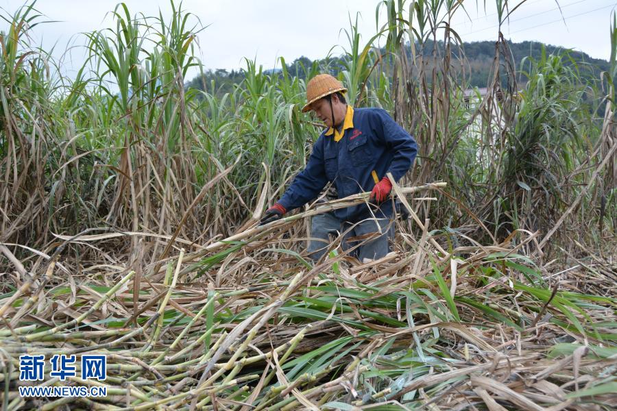 12月9日,万前村村民在收割“百年蔗”。新华社记者 王任远 摄