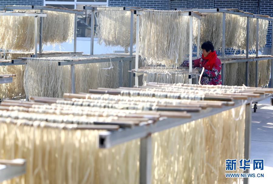 连日来,在河北省石家庄市井陉县南王庄乡割髭岭村,当地农户忙着加工晾晒红薯粉条,保障市场供应。割髭岭粉条采用传统酸浆法纯手工制作而成,柔中带筋、久煮不烂。新华社发(梁子栋 摄)