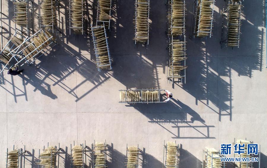 连日来,在河北省石家庄市井陉县南王庄乡割髭岭村,当地农户忙着加工晾晒红薯粉条,保障市场供应。割髭岭粉条采用传统酸浆法纯手工制作而成,柔中带筋、久煮不烂。新华社发(梁子栋 摄)