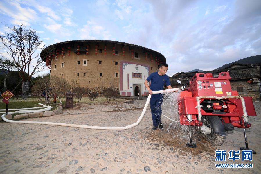 近年来,福建省漳州市消防救援支队与南靖县土楼管理委员会协力为辖区内的20座世界文化遗产土楼建立消防安全档案,并通过安装智能烟感与智慧用电监管系统,推进文物保护智能化。同时成立4支共20人的土楼景区专职消防队,与南靖县土楼消防救援站指战员一道,共同守护土楼的消防安全。新华社记者 姜克红 摄