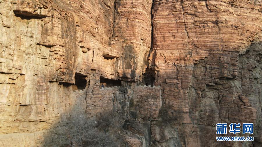这是12月4日拍摄的河北省沙河市柴关乡峡沟村挂壁公路(无人机照片)。新华社记者 高博 摄